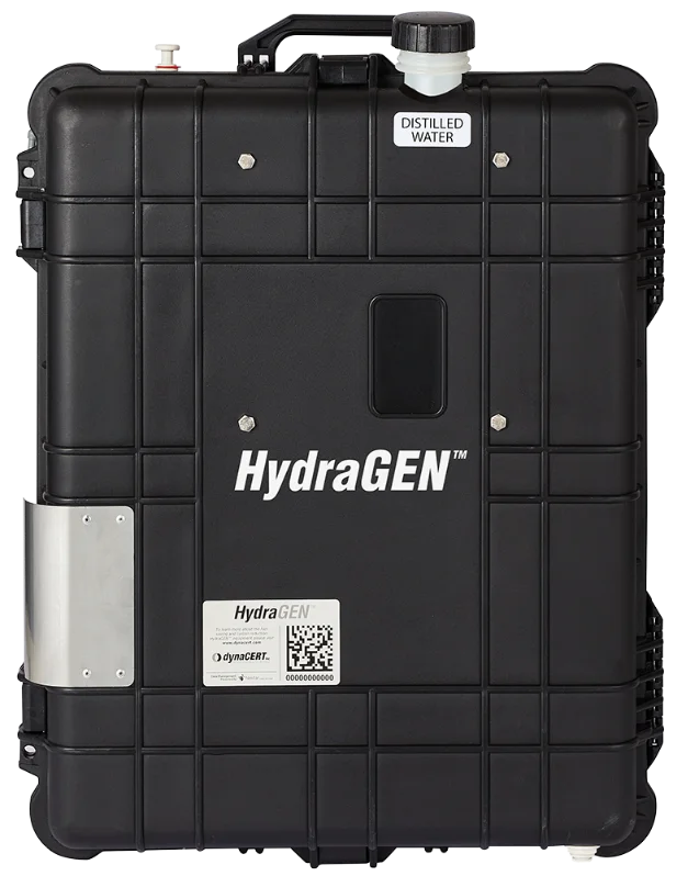 The dynaCERT HydraGEN technology is a unique, patented system that produces hydrogen and oxygen on demand through electrolysis. This process uses distilled water and potassium hydroxide (KOH) to generate clean gas, which is then introduced into the diesel engine's air intake. The hydrogen and oxygen act as a combustion enhancer, leading to a more efficient and complete fuel burn.